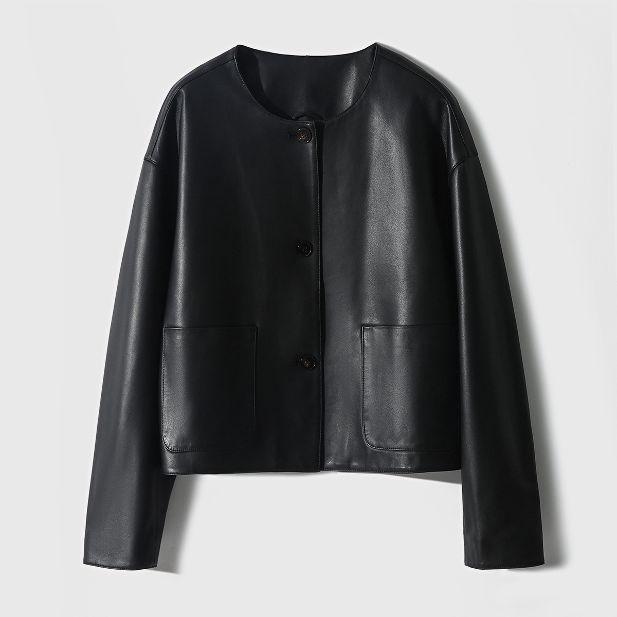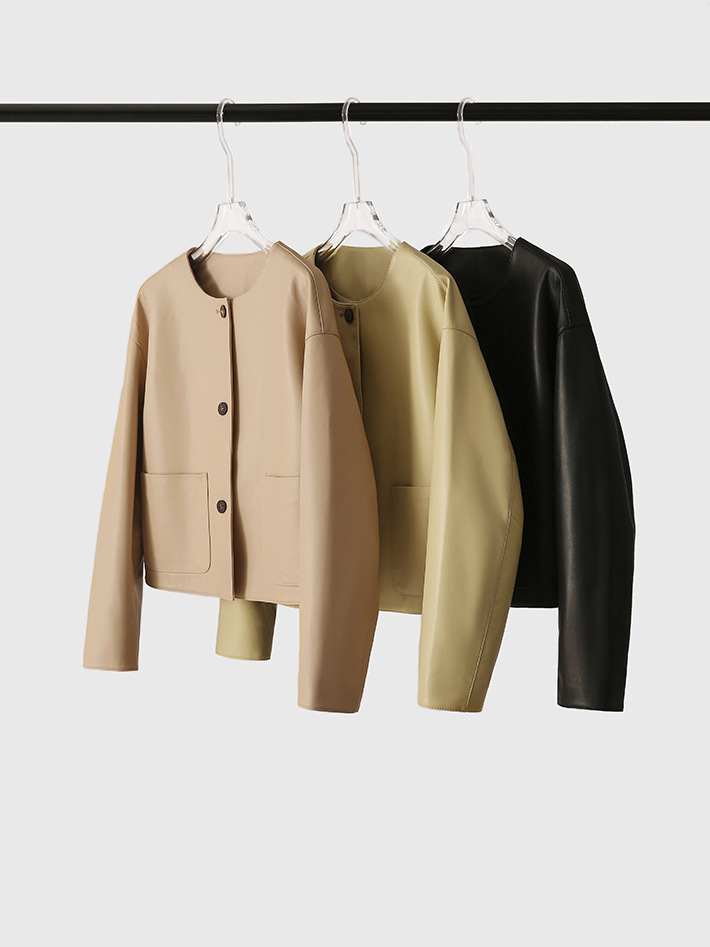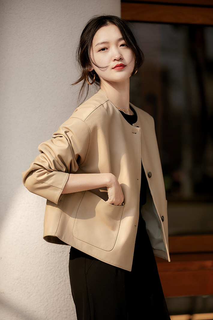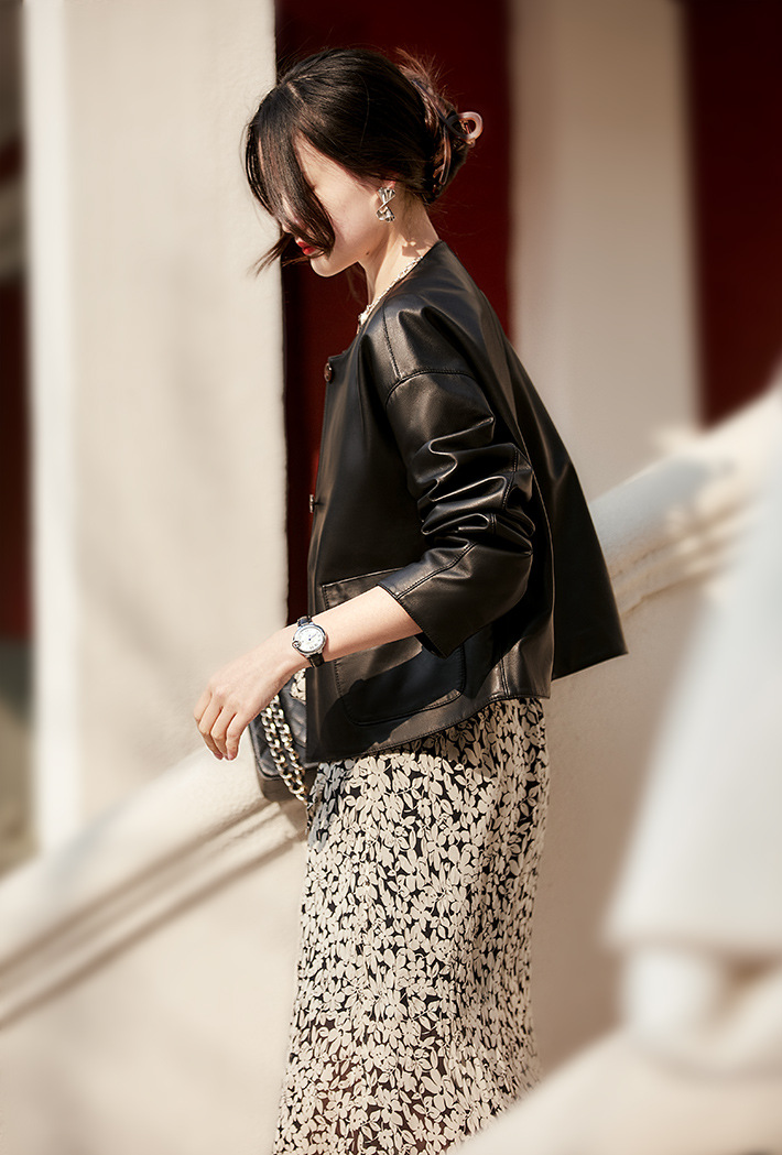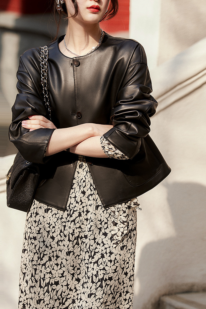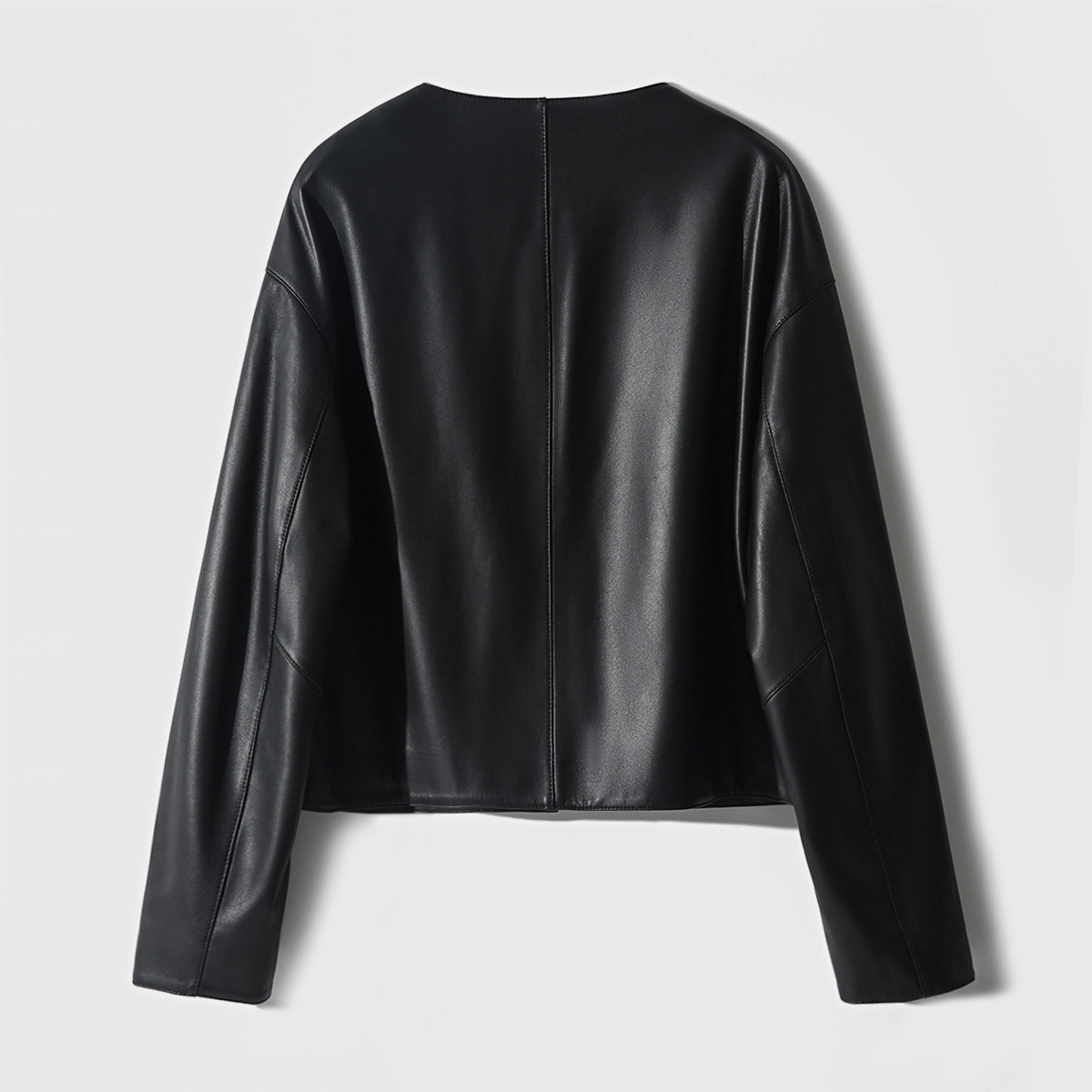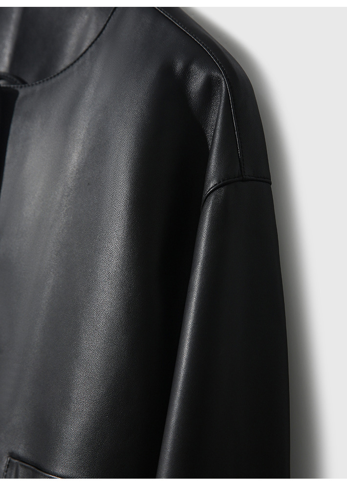 Short box type leather coat, create avant-garde fashion luxury 簰 sense