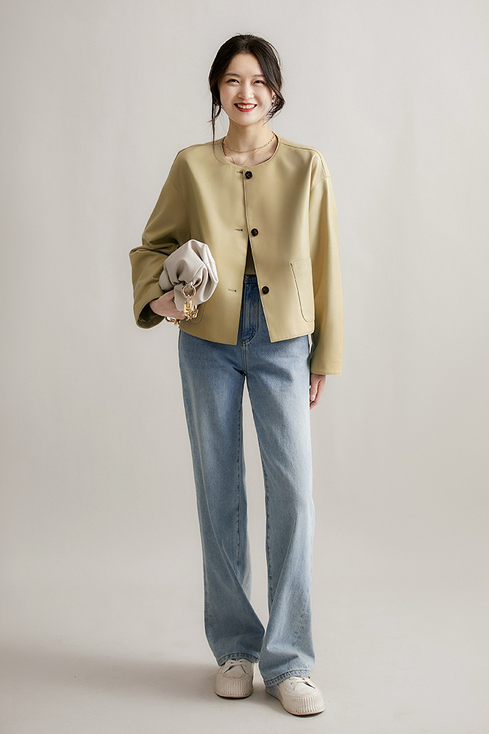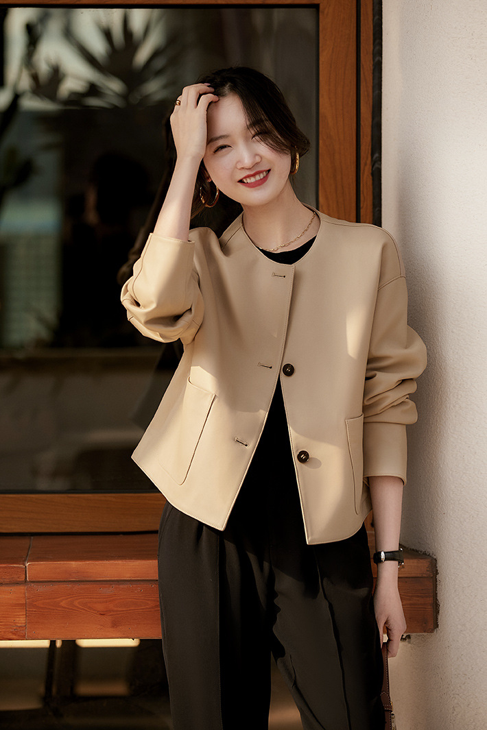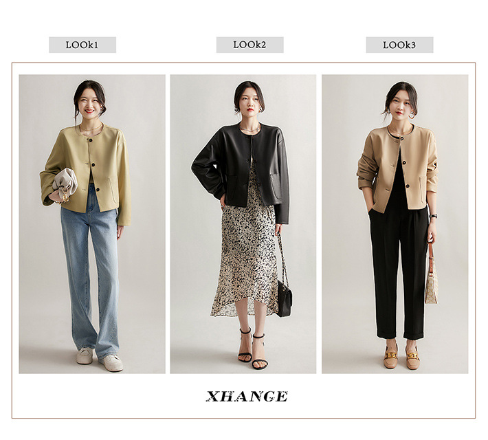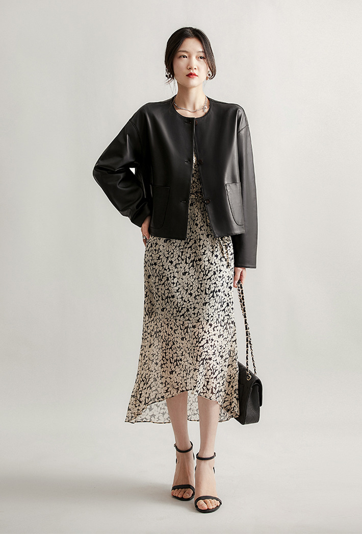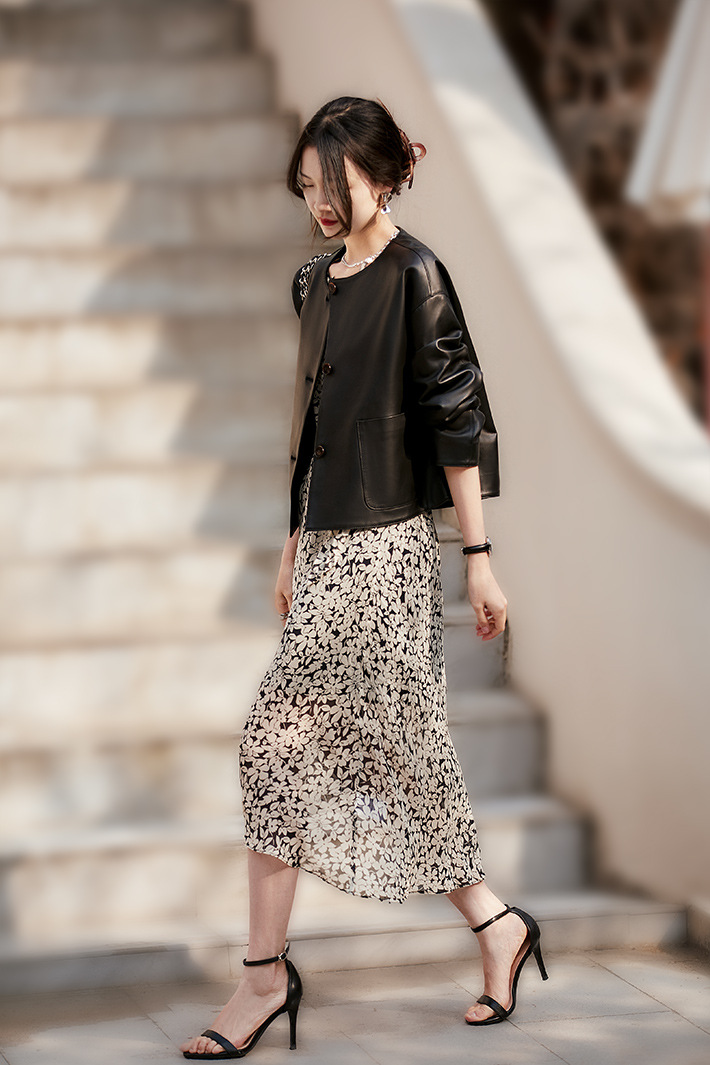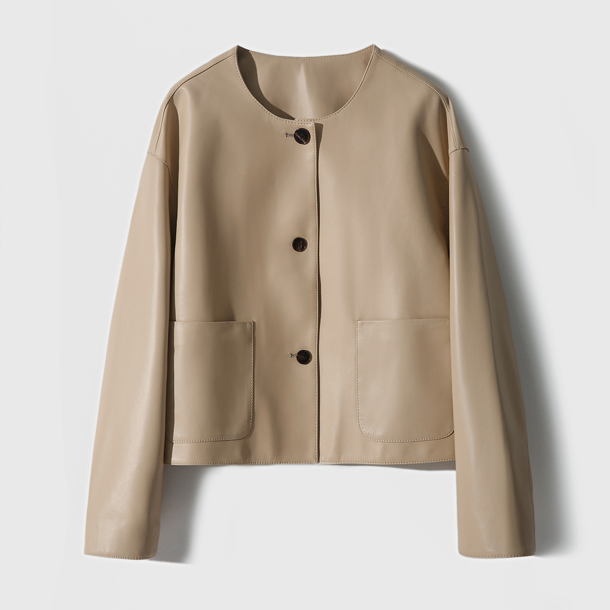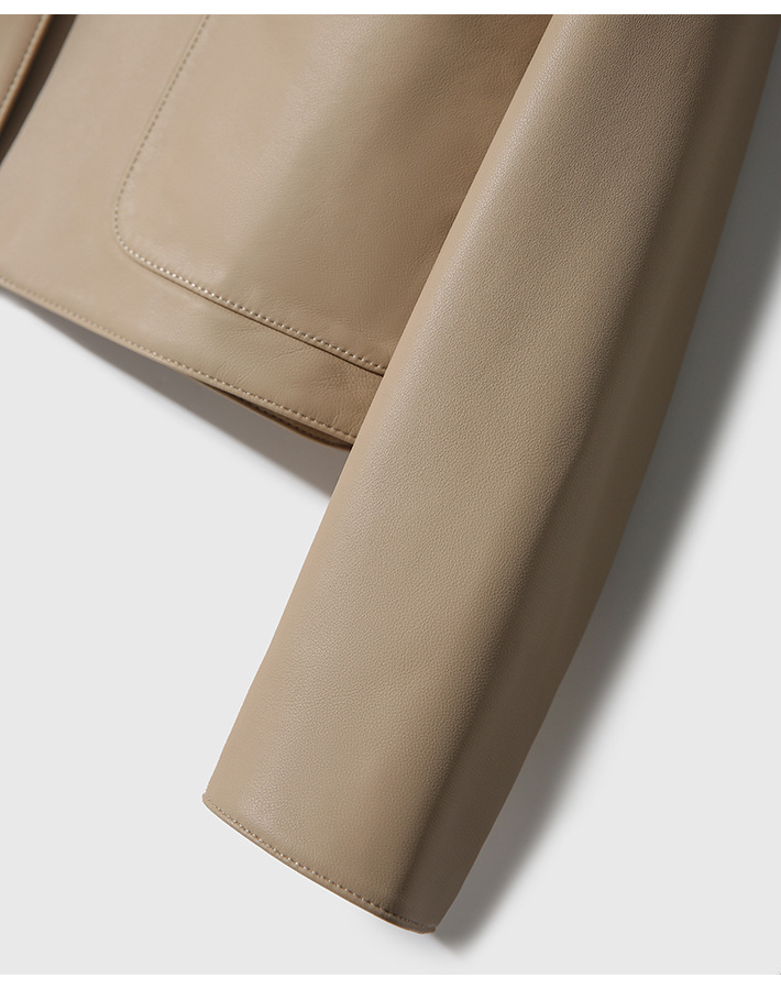 Short box type leather coat, create avant-garde fashion luxury 簰 sense